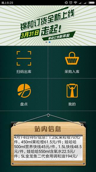 锦和批发配送平台 网站建设+软件开发发布于:2018-03来源:钊息信息 批发下单网站 优势: 锦和为长沙第二大连锁加盟商 加盟门店数近4000家 上午下单,下午送达 配送后台 功能亮点: 同时可对800个单品进行智能拣货,大大提高出库效率 灵活价格策略支持各类促销活动 强大的报表系统实时掌握仓库运营状况 手持终端 功能亮点: 将手持终端合理应用于扫码出库、扫码入库、盘点等环节,大大减少人为出错率 门店扫码下单,比传统PC下单更便捷